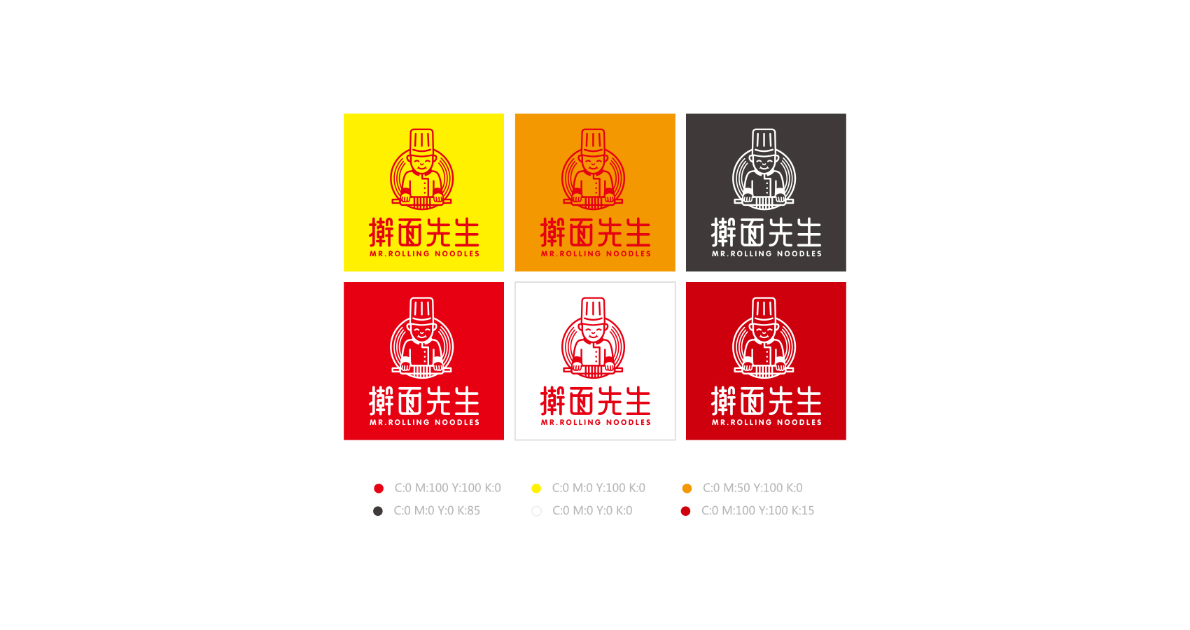 LOGO以简线性的设计手法表现,图形结合了擀面师傅的人物造型进行设计,使LOGO与品牌名称相符合,从而促进了品牌的传递性,更加贴合产品和行业属性。人物形象具体表现为擀面师傅,带着厨师帽,正在擀面的动势呈现。